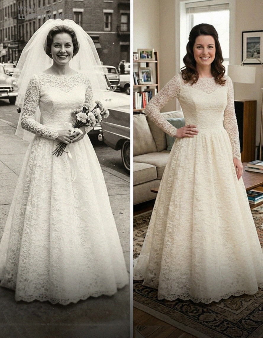 I unzipped it, and the dress was exactly as I remembered: ivory silk, lace at the collar, and pearl buttons down the back. It still smelled faintly of Grandma.